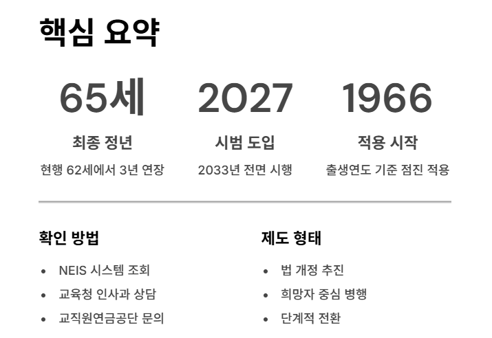 | 2033년~ | 전국 교육공무원 | 65세 | 전면 시행 |