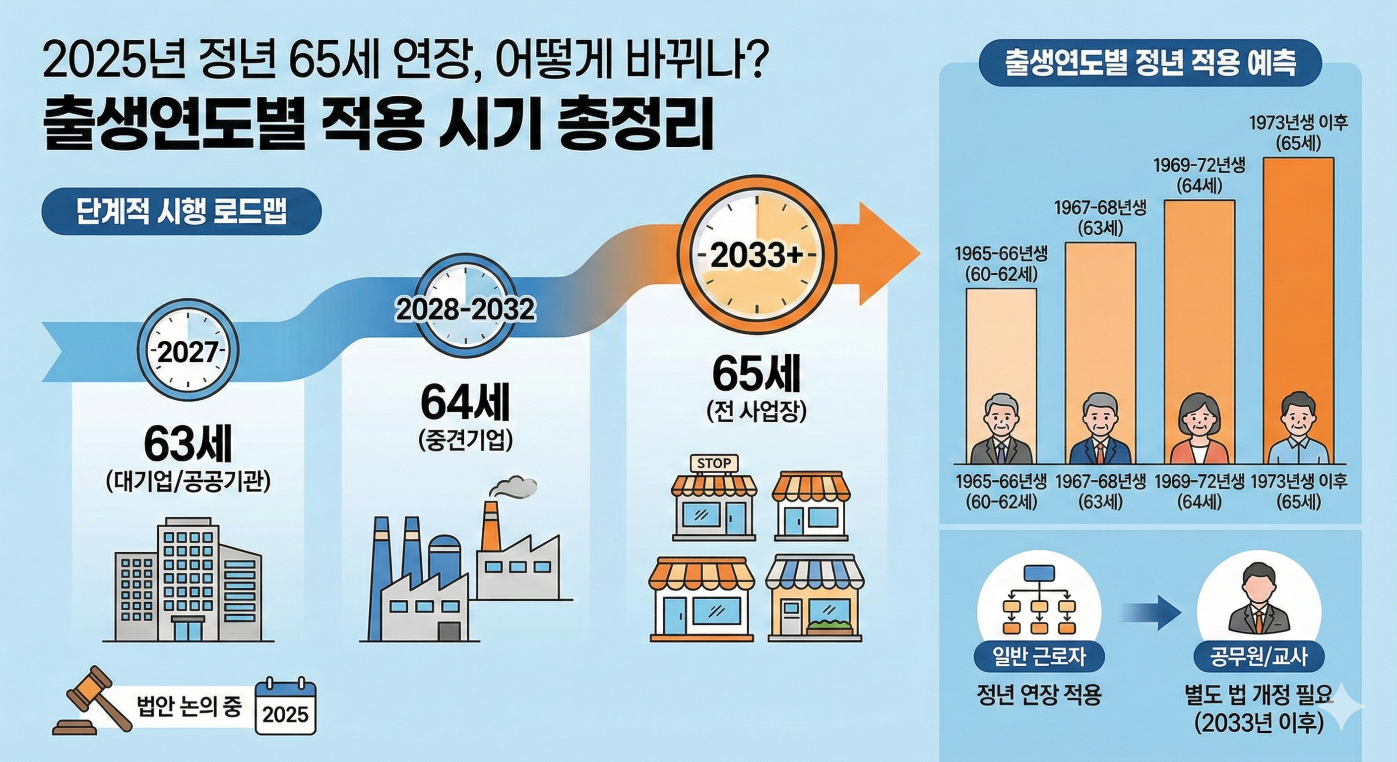 2025년 정년 65세 연장, 어떻게 바뀌나? 출생연도별 적용 시기 총정리
