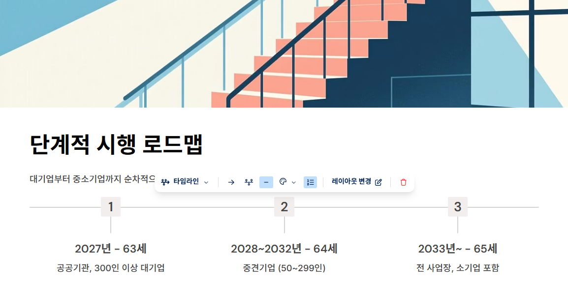 | 2027년 | 63세 | 공공기관, 300인 이상 대기업 |