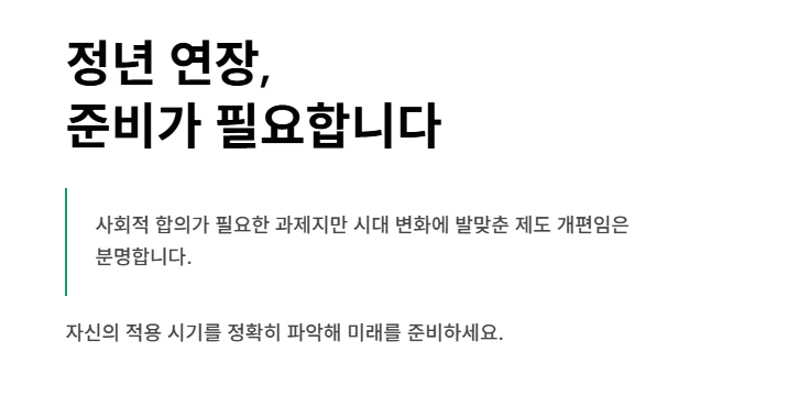 정년 연장, 사회적 합의가 필요한 과제지만 시대 변화에 발맞춘 제도 개편임은 분명합니다.